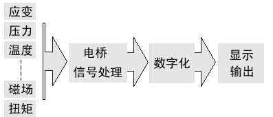 如圖2所示,傳感器電橋電阻感受物理量的影響產生變化時,電橋將此電阻值變化轉化為電壓或電流的增量,并經過放大處理,數字化以后換算成應變數值或輸出與物理量變化成比例的電信號,也可以按預定的要求進行處理得到所需要的應力和應變數值。