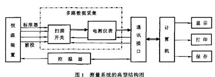 熱電偶、熱電阻自動測量系統的種類很多,它可以是一體化的,也可以是由若干部件構成的。典型結構如圖1所示。