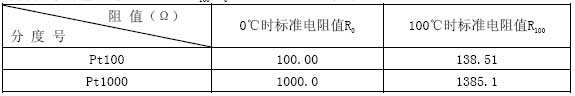 按IEC751國際標準,溫度系數(shù)TCR=0.003851,Pt100(R0=100Ω)、Pt1000(R0=1000Ω)為統(tǒng)一設(shè)計型鉑電阻。TCR=(R100-R0)/(R0×100),其中