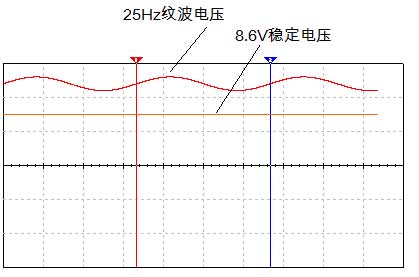 a、Vin輸入條件:電壓12V,Vpp=1V,紋波頻率25Hz。 用示波器測(cè)Vo=8.6V,見圖3。