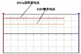 b、Vin輸入條件:電壓12V,Vpp=1V,紋波頻率5kHz。 用示波器測(cè)Vo=8.6V,見圖4。
