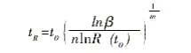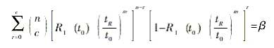 其中,n:進行壽命試驗樣品數(shù);r:在[[0,t]時間內(nèi)失效個數(shù);c:合格判定數(shù);to:任務時間;R1 (to):在規(guī)定任務時間內(nèi)的產(chǎn)品極限質量,可記為LTPD;β:使用方風險;m:形狀參數(shù);tR:可靠壽命。